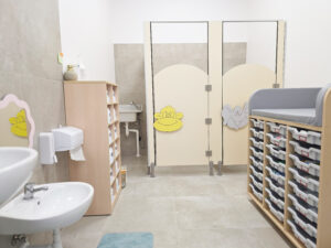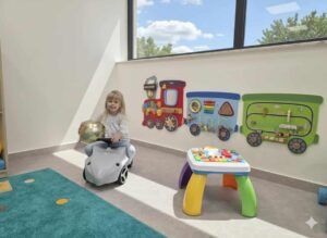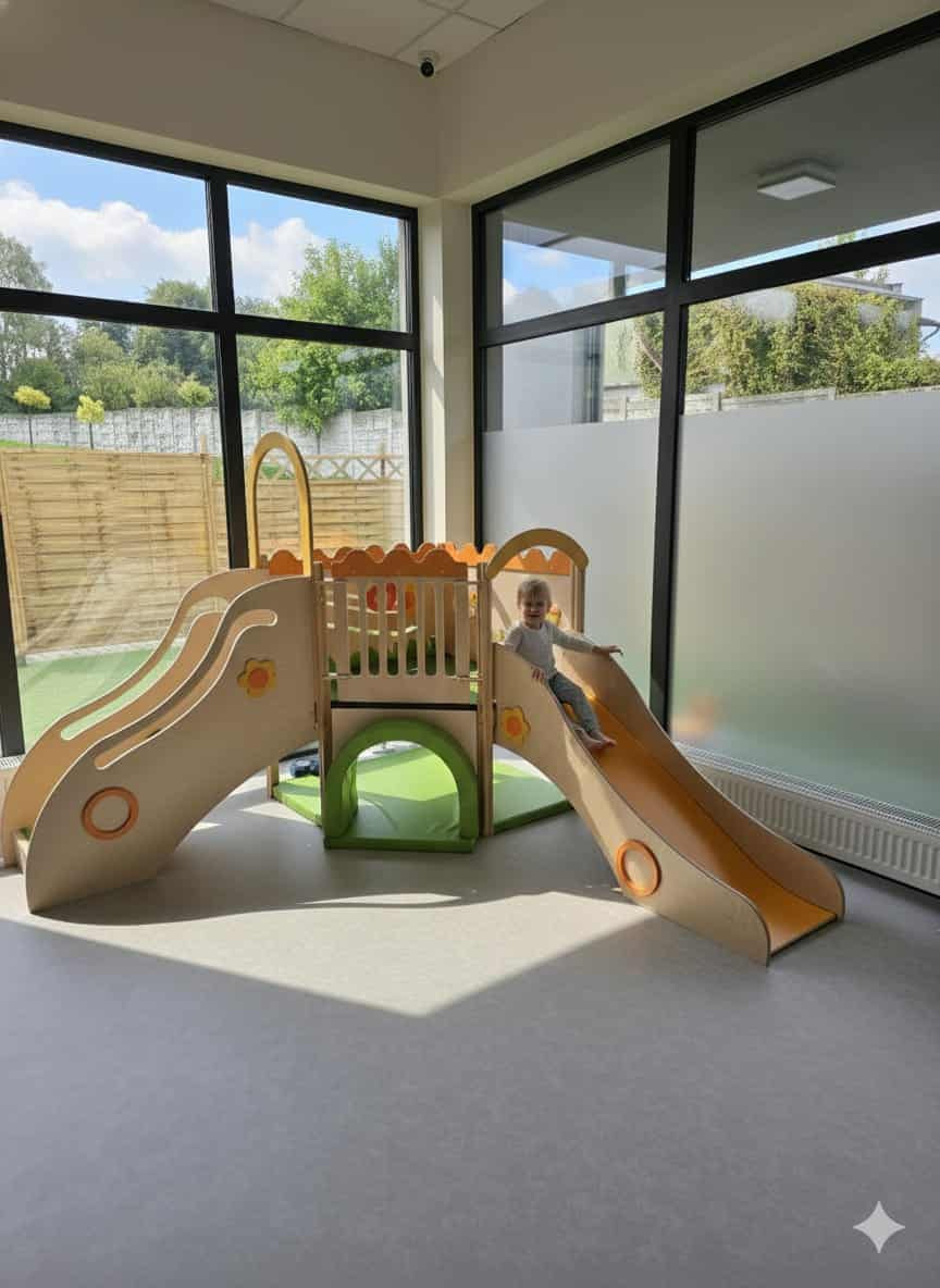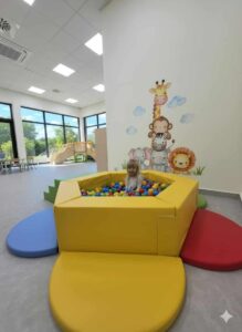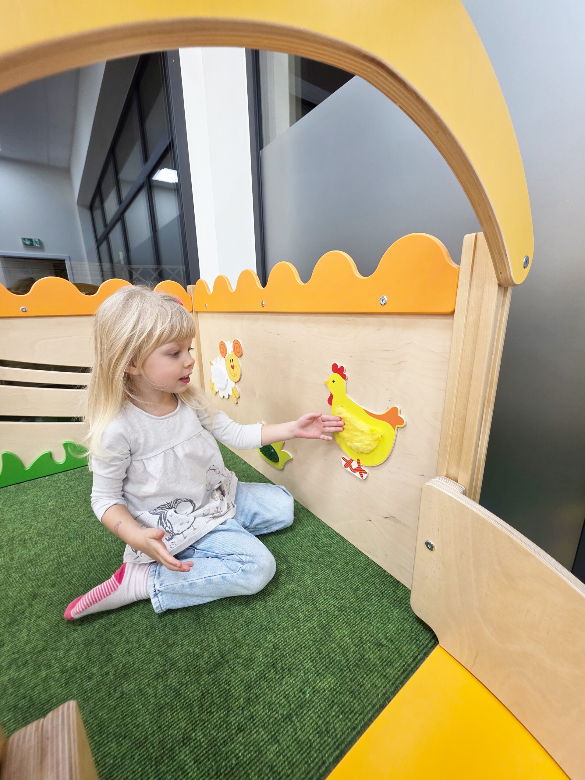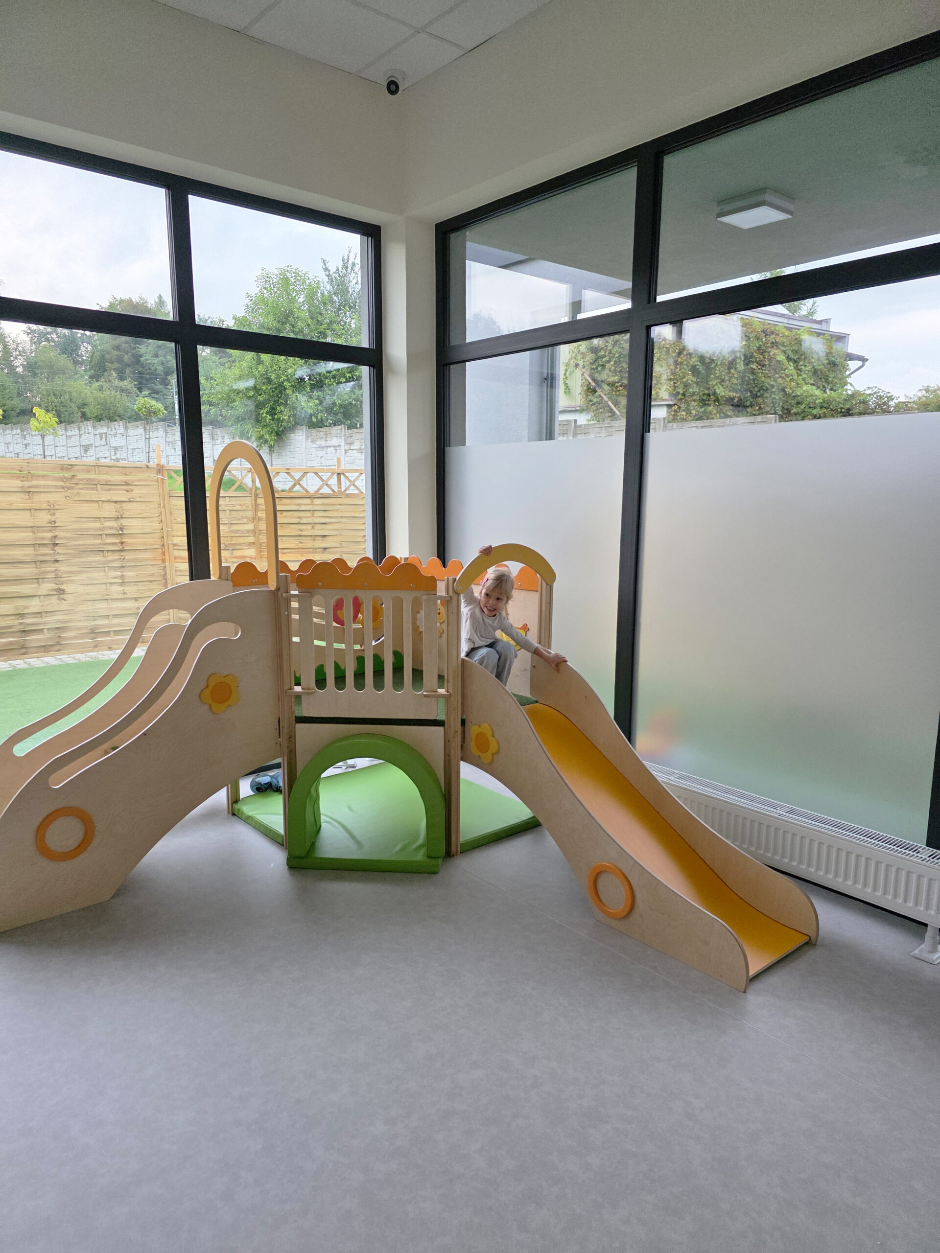 - Żłobek w otoczeniu natury – dzieci codziennie korzystają z własnego placu zabaw oraz ogrodu.
